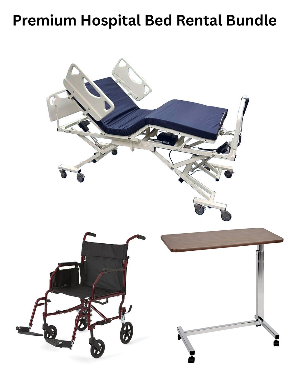 Experience a faster, more comfortable recovery with a hospital-grade bed, transport, and over-bed table—all in one convenient rental package.