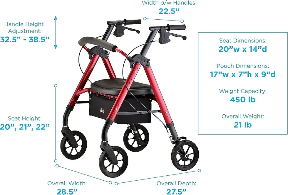 STAR 8 DX HEAVY DUTY ROLLATOR, 450 LB. WEIGHT CAPACITY, RED